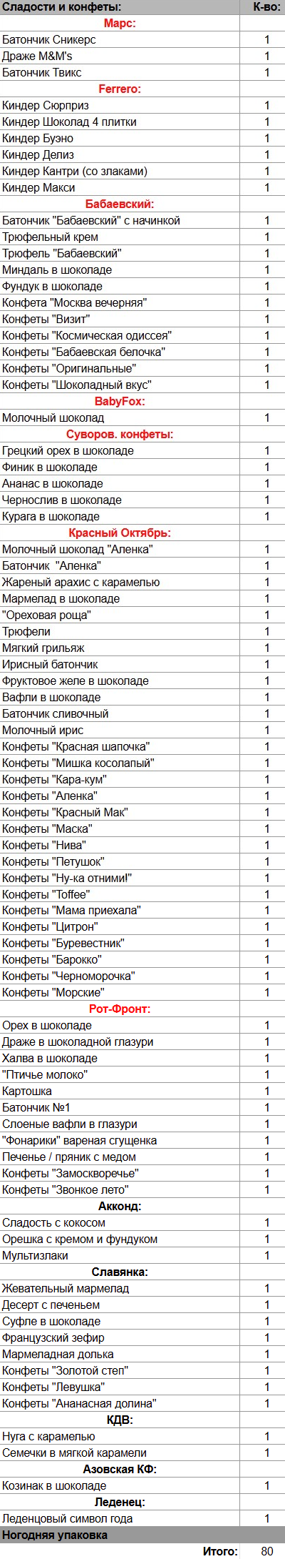 Кол-во сладостей: 80 шт.