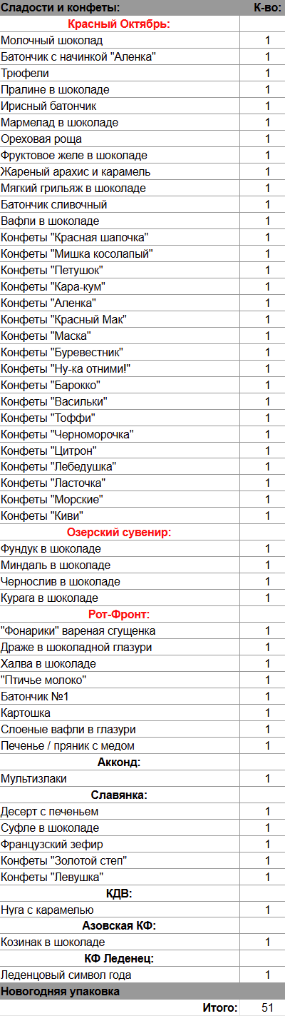 Кол-во сладостей: 51 шт.