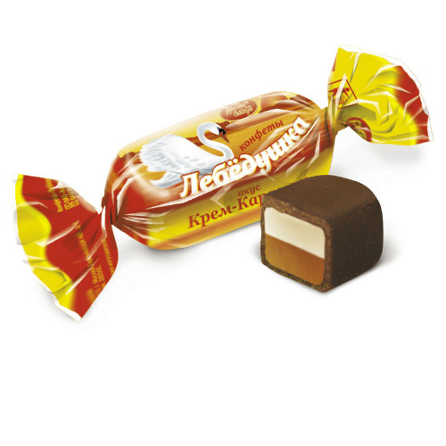 Конфеты Лебедушка вкус крем-карамель производства Красный Октябрь можно купить оптом с доставкой по Москве, Подмосковью и ЦФО. Низкая цена обусловлена отсутствием посредников при наличии прямого договора с производителем.  Все актуальные сертификаты в наличии. Минимальный заказ: 1 коробка