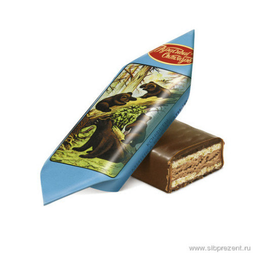 Конфеты Мишка косолапый с вафлями производства Красный Октябрь можно купить оптом с доставкой по Москве, Подмосковью и ЦФО. Низкая цена обусловлена отсутствием посредников при наличии прямого договора с производителем.  Все актуальные сертификаты в наличии. Минимальный заказ: 1 коробка