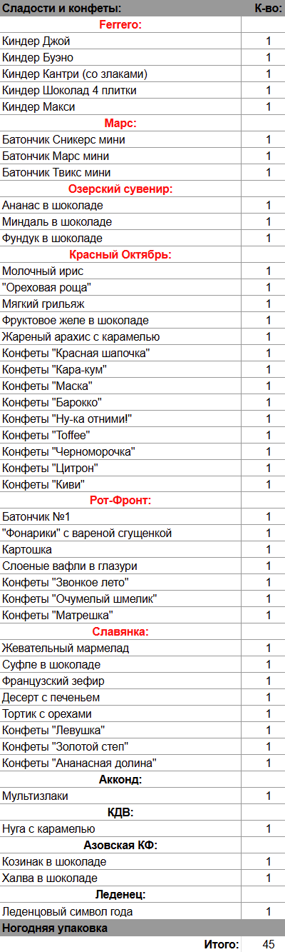 Интернет-магазин сладких новогодних подарков работает от производителя напрямую, за счет чего мы убираем посредников и снижаем цены на детские новогодние подарки. Кроме того, наша логистика позволяет доставить заказ практически в любой город за наш счет. Все цены на сладкие подарки актуальны
