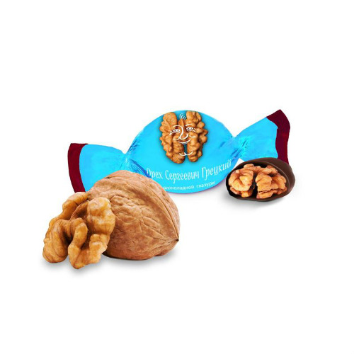 Конфеты Орех Сергеевич Грецкий производства Озерский сувенир можно купить оптом с доставкой по Москве, Подмосковью и ЦФО. Низкая цена обусловлена отсутствием посредников при наличии прямого договора с производителем.  Все актуальные сертификаты в наличии. Минимальный заказ: 1 коробка