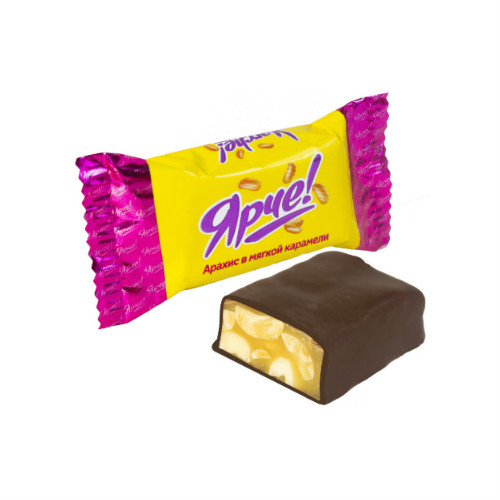 Конфеты "Ярче" арахис в мягкой карамели производства кондитерской фабрики Яшкино можно купить оптом с доставкой по Москве, Подмосковью и ЦФО. Низкая цена обусловлена отсутствием посредников при наличии прямого договора с производителем.  Все актуальные сертификаты в наличии. Минимальный заказ: 1 коробка